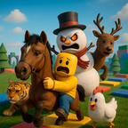 Obby: у свеце жывёл-гэта яркі і вясёлы свет, дзе вас чакаюць займальныя міні-гульні, захапляльны ўцёкі ад снегавіка, дынамічныя скокі на конях, выпрабаванні на каляровым падлозе і многае іншае!
