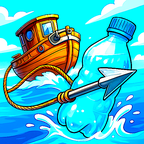 2. Собирайте мусор: на Вашем судне есть пусковая установка, в ней - гарпун. Пусковая установка совершает колебательные движения из стороны в сторону, а Вы управляете пуском гарпуна - касайтесь экрана, чтобы поймать мусор или рыб из воды.