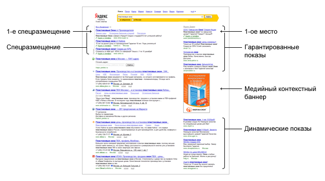 Объявления, могут не показываться на Рекламных местах, указанных в п. 2.1 Правил, поскольку по некоторым запросам они могут вытесняться медийным контекстным баннером (http://advertising.yandex.ru/media/context/) и/или товарными предложениями Яндекс.Маркета (http://market.yandex.xx/).