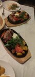 Меню , конечно, хорошее. Но вот подача мяса непонятная: огромный кусок и сладкий соус к нему на тарелке выглядят не очень аппетитно. Салаты понравились, картофель. Не понравилась музыка