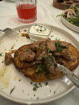 Плюсы -место, колоритное, вкусные блюда (но не все) Хорошая живая музыка Минусы -мангал работает по выходным только, но несмотря на это, 30% меню состоит из блюд на мангале… Заказали шашлык, принесли жирное мясо со сковороды… только потом сообщив о таком моменте с мангалом. Скидку делать отказались. -принесли драники с сырым мясом… мясо убрали, драники оставили (в счет их включили без гарнира) -грубая администратор, за все косяки, даже кофе комплиментрарно не предложили.