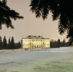 Прекрасный дворец, находится в нескучном саду. Мало кто про него знает. До сих пор так и не поняла время работы, когда открыты ворота, попасть получилось только со второй попытке на территорию. Внутрь дворца не попасть, хотя судя по фото в интернете там красиво…. Территория небольшая, зимой фонтан закрыт, но когда всё в снегу тоже есть свой шарм… историю дворца нашли на просторах интернета… 🧐. …. В снегу и с подсветками дворец как будто из сказки и охраняется огромными псами …