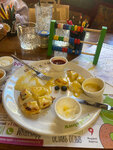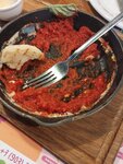 Обед не удался( ждали заказ полчаса. Причем все было простое - котлета с пюре, шакшука и мамин завтрак. Ребенок еле дождался. Видите ли много доставки, выходной. Поэтому сидите гости, ждите. Игрушки сломанные, ребенку заняться нечем. И отдельно про шакшуку - может вам уточнить рецепт этого блюда? Мне подали горячий соус(типа томатной пасты из банки) с несколькими кусочками баклажана (это все овощи) и 3 перепелиных яйца сверху. Доска, на которой подаётся сковорода, пахла рыбой. Очень пожалела, что не вернула сразу, а попыталась есть это "блюдо".