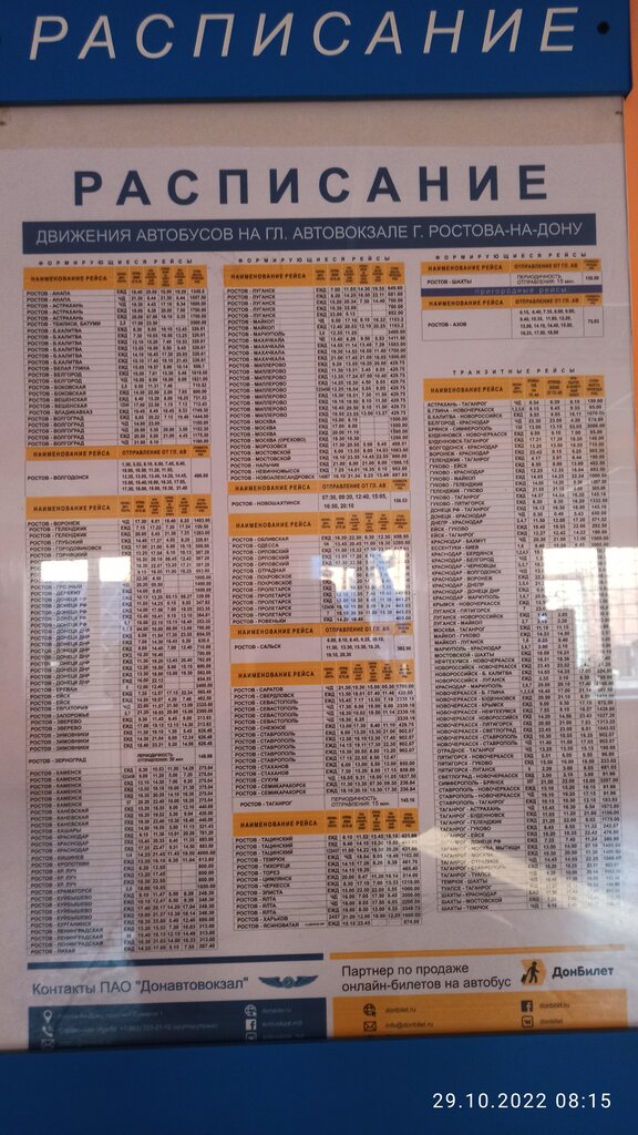 Чистый, уютный, нормальный персонал. Однако, есть одно но. Предварительная продажа билетов льготникам только в день отправления автобуса. Это что и как? Местечковые закидоны или спутаны берега? В областном без проблем. Неужто другая страна, а может банальная дискриминация? Второй момент. Однажды в Ростове брал билет до Гуково, попросил и дали обратный но уже с неким сервисным сбором. Удивительные города... Гуково... Зверево... (В кассе сказали, что ответы можно получить у начальства в Зверево). Странно. А почему не в Новосибирске или Стамбуле?
