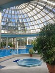 Писала огромный отзыв, а он в итоге слетел. Этот санаторий на 10+: бассейн, сауны, ресторан, номера! 1. Номера чистейшие, прибираются ежедневно, замена полотенец каждый день и кладут мыльные принадлежности. Есть халаты. 2. Ресторан, питание. Есть большой зал со шведским столом минимум человек на 100 и две отдельных комнаты для родителей с детьми. Что очень удобно для всех отдыхающих. Питание очень разнообразное, свежее, на высшем уровне. Чисто русская еда, привычная нам! Каждый день новый сорт рыбы (полуготовый тунец, зубчатка, красный окунь, лосось, селедка и др). Мясо самое разнообразное. 2-3 каши утром, разные сырники, 2-3 разных супа, много гарниров, салатов, закусок и тд. Очень красивый, доброжелательный персонал в фирменной одежде Азимут. Огромная благодарность поворам и обслуживающему персоналу. Каждый день фрукты - бананы, хурма, яблоки, груши, виноград, мандарины, сухофрукты. Очень вкусные вторые блюда, удивляли постоянно. Было не возможно не ходить кушать три раза в день, тк все время было любопытно, а что будет сегодня 🤣🧁🍫🥧🍦🎂🍧🍹 3. Шикарный диагностический центр. Хорошо организована работа медицинского персонала - все на своих местах, приёмы ведутся вовремя врачами и медсестрами и при этом умудряются идти всем на встречу по возможности, если кто-то где-то опаздывает. Огромная всем благодарность за ваше отношение и труд. Врач-терапевт выслушает и учётом все ваши пожелания при составлении программы лечения, главное расскажите подробно. 4. Бассейн и сауны. Есть большой бассейн с каскадом и струями, детский лягушатник и маленькая чаша джакузи. Понравилось, что можно приходить в белых халатах и шлепках, и что на месте есть полотенца. 5. Набережная и сад. От санатория можно спуститься вниз по лестницам и территории красивого сада с прудом золотых рыб. Говорят ещё где-то енотики, но мы их не искали. Набережная красивая, обустроенная, со скамейками. Процветания вашему санаторию и огромное спасибо руководству за такое качество услуг! Обязательно по рекомендуем друзьям и сами приедем! С наступающим Новым годом!
