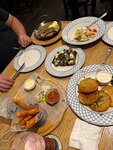 Посетили заведение, обслуживание было хорошим. Заказали жареный сыр — вполне неплохо. Гренки оказались вкусными, но слишком пропитаны растительным маслом, что испортило впечатление. Салат — нормальный, без нареканий. Основное блюдо, бургер, не понравился — мясо было неаппетитным. Щёчки с пюре тоже разочаровали, на вкус совсем не то, щёки даже не доели. Пиво пробовали — в порядке, но для оценки стоит довериться знатокам, мы просто попробовали. В целом место показалось грустным и без настроения. Пока возвращаться не хочется.