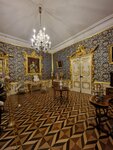Сам дворец прекрасен, особенно снаружи. Но тут стоит помнить, что практически все, что вы видите внутри - восстановлено, а не оригинал. Немного удивляет примитивный геометрический рисунок паркета в большинстве показываемых помещений. Скорее всего фото оригинального не сохранилось. Исключение составляет паркет в т.н. китайских комнатах. Там паркет действительно интересен и соответствует дворцу. Но туда вас не пустят и заставят пойти сквозь эти комнаты не останавливаясь. Почему? Загадка! И тут мы плавно переходим ко второй части отзыва - экскурсии (самостоятельно побродить по дворцу почему-то нельзя). Вот за экскурсию - двойка! Организована она отвратительно - в самых скучных залах вы будете стоять подолгу и слушать лекцию уровня третьего класса начальной школы. Мимо всех интересных комнат вы будете проходить. Вам будут регулярно напоминать о том, что нельзя выставлять руки за верёвочку, хотя при этом группа не будет помещаться в зале из-за малого места оставленного для группы и из-за слишком больших групп. Почти ничего из того, что вам рассказывают, не будет интересным, ощущение такое, что лекцию нарочно сделали нудной и неинтересной. В общем своих денег (750р за вход во дворец + 750 за нижний парк, без которого вы во дворец не попадете) она даже близко не стоит. В залах довольно душно, это стоит учитывать тем, кто не переносит духоту. Скамеек для посетителей нет, равно как и кулеров с водой. Но об этом вас никто не предупредит за ваши же деньги.
