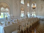 Очень красивый дворец (только за это звезду и ставлю), но персонал просто отвратительный. Мнят о себе слишком много. Взяли билет ко времени в 14:30. Думали что проведут экскурсию в небольшой группе, без давки и суеты. Оказалось что нет. Сначала мы вынуждены были отстоять долгую очередь. Затем толпится с кучей людей в тесной комнате. Пускают группами по 30 человек на экскурсовода, но конечно никто не дожидается, пока группа уйдет, сразу запускают следующих. Возникает путаница с аппаратурой и сильная давка. Отдельно стоит отметить их "систему безопасности". Билет проверяют 3 раза (особого смысла в этом обнаружено не было). Первый раз на входе во дворец, к этому вопросов нет. Если купил билет по Пушкинской карте, просят показать паспорт, который даже не смотрят. Второй раз билет смотрят внутри дворца, когда отсчитывают 30 человек на группу, зачем не понятно, потому что если мы прошли внутрь, билет очевидно есть. Третий раз ты должен отсканировать билет на вертушке уже в составе группы. Снова же, если ты купил билет по Пушкинской карте, надо идти к отдельной женщине с карточкой, которая тебя пропустит, но никаких указаний по этому поводу не дают. Только в моменте, когда у тебя не сканируется билет, начинают орать, что надо идти к ней. Возникает вопрос, о необходимости такой системы. Понятно, что время сейчас не спокойное, устраивают террористические акты. Но мы абсолютно спокойно пронесли бумажный свернутый пакет с плюшками и оставили в комнате с 3 женщинами наблюдающими. Никакой реакции от них не поступило. Они его увидели, но просто проигнорировали. Хотя казалось бы в комнате с 90 людьми появлися подозрительный сверток. И вот вы наконец то попали во дворец. Дальше вас ждет легкий асмр нашептывание на ушко от экскурсовода и легкий буллинг от сотрудниц дворца, отвечающих за "безопасность". Помещения во дворце небольшие, в них стоят одновременно 2-3 группы по 30 человек, нормально рассмотреть интерьер не получается. Причем большая часть комнат огорожена веревками (примерно в 1-2 метрах от экспонатов). Если ты хоть ноготком вышел за веревку, начинают пищать датчики и визжать сотрудницы, что надо не выходить за веревки и еще лучше держаться в сантиметрах 30 от них. Очень насмешила речь экскурсовода о том что надо быстро проходить комнаты, чтобы сохранить в них необходимую температуру для экспонатов. Нельзя останавливаться, оборачиваться, фотографировать, лишь бы быстрее пробежать помещение. Это задача из серии невыполнимых, потому что в группе 30 человек, в следующей еще более маленькой комнате стоят еще 30 человек, и сзади нас поджимают следующие 30 человек. Позабавила необходимость надеть бахилы. Понятно, если это осень, зима, грязь на улице. Но летом ты вынужден преть в бахилах и скользить в них по всеми дворцу, пол которого выложен из скользкого лакированного паркета. Присесть отдохнуть нигде нельзя, все стулья огорожены, накрыты чехлами, а скамеек для посетителей не предусмотрено. Во всем посещении дворца радует только то, что в нижний парк мы сходили перед ним, иначе впечатление было бы безвозвратно испорчено.
