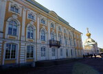 Великолепный, величественный, грандиозный дворец. Находится на возвышении и является доминантой всего Петергофского ансамбля. Первоначально достаточно скромный при Петре I, не любившем просторные дворцы, и далее многократно расширялся, надстраивался и реконструировался, сохраняя и дополняя первоначальную постройку. Дворец - летняя резиденция и место жительства Дома Романовых, институт сохранения множества подлинных предметов искусства и институт реставрации. В годы Великой Отечественной войны был оккупирован немцами, расстреливался, разграблялся, сжигался и уничтожался с особой злобой и жестокостью, как символ Империи. Сейчас в Большом Петергофском дворце проходит временная выставка Подвиг возрождения (фото прилагаю) о том, что осталось от дворца после войны (только фасадные стены без крыши), как эвакуировали и спасали ценности, как по особой технологии закапывали, маскировали и прятали габаритные скульптуры, как по схемам и планам их потом разыскивали и находили. О том что исчезло навсегда, например, скульптура "Самсон", которую из-за веса, объёма, отсутствия времени, оборудования и рабочих рук, просто не успели демонтировать и спрятать. О подвиге реставраторов, сумевших очень бережно, по старинным технологиям сделать невозможное, повторить этот шедевр и возрадить его величие. Сегодня Большой Петергофский дворец даёт возможность осмотреть его с общим экскурсионным обслуживанием, существуют множество маршрутов. В летнее время предлагаются особые, авторские экскурсии, разные по теме из года в год, в выходной день для обычных посетителей, в пустом, полностью закрытом музее. Вы сможете посетить музейное пространство с хранителем, который, вооруживщись перчатками, покажет вблизи некоторые экспонаты, расскажет и пояснит то, что не видно обычным посетителям, проведёт совершенно особенным маршрутом.