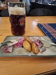 Интересный аутентичный ресторан, удобно, что располагается в отеле, вечером можно сходить поужинать. Столик зарезервированы, лучше это сделать заранее, но как правило всегда столик найдется. Столы липкие, видимо не очень хорошо убирают. Живая музыка - приятное дополнение, но честно говоря, репертуар не всегда подходящий и звук не всегда хороший. Здесь можно отведать хорошее пиво, все берут большую тарелку с рулькой, различными колбасками собственного приготовления, мясом. Рулька и колбаски маленькие понравились, а вот плавающие сардельки в тарелке - не очень. Приятный дополнением этой тарелки было капуста тушеная и картофель по деревенски. Соусы на троечку. Вес этого изыска - 1800, мы брали на 4х человек и не все съели. Официанты некоторые говорят очень тихо, перепутали пиво которое просили, немного не внимательны. Но в целом приятное место! Если остановились в отеле Космос, то рекомендую посетить!
