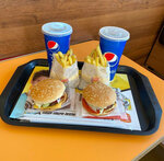 Были с детьми. Брали картошку фри, креветки, наггетсы и мороженое и Пепси. Заказ делали с терминала. Заказ приготовили быстро.