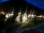 Возможно наше мнение связано с временем года, но все же именно такую оценку заслужил этот отдых здесь. Были 10 марта. Из плюсов- очень атмосферно. Попадаешь в сказку. Деревня хоббитов. Эффект вау есть однозначно от картинки. Жили в первом домике. Из минусов- очень холодно. Чрезвычайно холодно. Взяли обогреватель. Комната прогрелась только к утру. Возможно не сезон, но спать легли в теплых вещах. Ванная комната имела уличную температуру. Сам домик крошечный, но очень милый. Еще нам не понравился завтрак. Такого сервиса еще нигде не видели. Отдельный домик-столовая. Приходишь и ждёшь когда придет официант и принесет еду. На выбор было два блюда. Мы выбрали макароны. Принесли сначала несколько кусочков сыра, зелень, сметану и много хлеба, а минут через 30 тарелку с макаронами. Без всего. Просто гарнир. Просто макароны. Самый долгий завтрак и самое долгое обслуживание. Больше часа потратили.Остались голодные, поехали завтракать в кафе. Если едете за антуражом, берите еду и теплые вещи в холодное время года. Мы были слегка разочарованы холодом и завтраком. Наше впечатление именно такое осталось.
