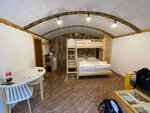 Симпатично и необычно снаружи. Так же стильно внутри. Есть холодильник, чайник, даже капсульная кофе-машина и немного посуды. На территории небольшая детская площадка. Персонал доброжелательный. Завтрак простой, но выбор есть и достаточно вкусно. Что не понравилось: близость к дороге. В целом общее полотно сказочности не создаётся, хотя отдельные домики хороши. Да, у домиков чуть облезлые бока. Внутри домика темновато, т.к. окно одно, небольшое и низкое. В целом заехать на один день очень здорово: необычно и при этом уютно.