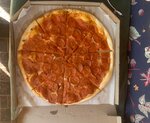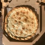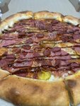 Заказ делал через приложение (первый заказ -10%). Забирал сам, к оговоренному времени не успели. Персонал вежливый. Пицца - тесто тонкое, начинки хватает, пепперони правильное. Пирог понравился.