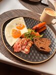 Прекрасное место для отдыха, все очень понравилось! Территория, дома, обстановка, все очень красиво, чисто, машину можно оставить прям возле домика. Что больше всего поразило, в доме есть абсолютно все! Посуда, полотенца, халаты, тапочки, шампуни, стиральная машинка, фен, щетки, и многое другое Еду можно приготовить самим на плите, на мангале, или покушать в кафе Завтрак очень понравился, сытный, вкусный Изначально приехали на 1 ночь, но на следующий день поняли что не хотим уезжать, позвонили администратору, очень милая девушка, пошла нам на встречу, продлили домик еще на сутки Магазин в 5 минутах на машине Вообщем замечательное место, за двое суток не нашли ни одного минуса Вернемся обязательно еще и не раз! И кстати за такой отдых очень приятные цены!