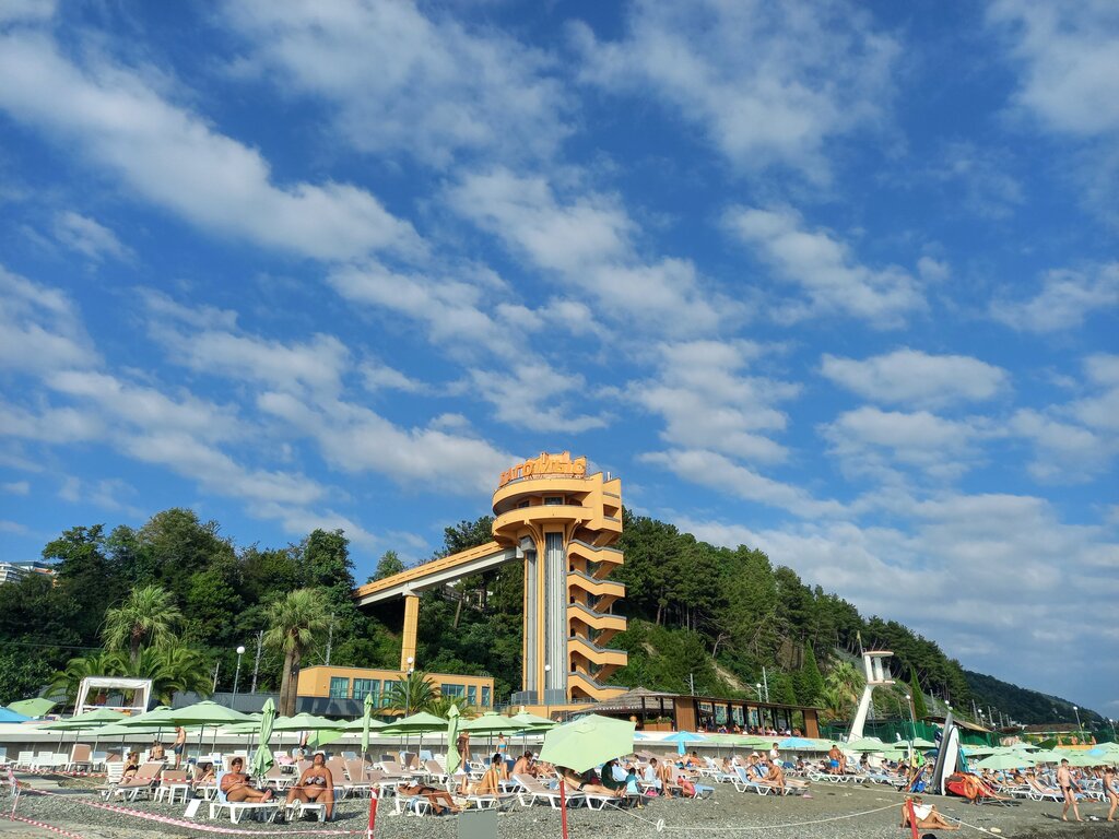 Отдыхали в Дагомысе с 1 по 10 августа 2025 года. Каждый день ходили на море. Пляж нам понравился. Есть всё: лежаки, зонты (за доп.плату), развлечения - катание на бананчике, таблетке, катере, после фотографии по желанию (1 тыс. рублей по ссылке). Музычка включена. Позже ребята куда-то пропали, но грусти это не прибавило. Есть душ, раздевалка. Мы были со своими лежаками, на камнях оставляли вещи, места всегда хватало. После купания пару раз заходили в столовую "Ивушка". Заходили в павильон с рыбками, порелаксировали. Можно пострелять в тире, посидеть в ресторане. Есть прокат сап-досок. В общем, все капризы за ваш счёт и хороший отдых вам обеспечен))