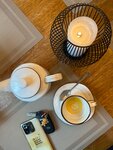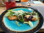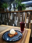 В кафе пришли семьей пообедать (предварительно обратив внимание на рейтинг и отзывы), увы, удовольствия не получили. Первым под критику попал морс: ощущение было, что ополоснули бутылку из- под морса и вылили в графин: ни вкуса, ни запаха. Потом принесли мой салат с морепродуктами: и вроде бы все довольно достойно, но кальмары были резиновые, зато креветки получились удачно. Потом мужу и старшей принесли бургеры (заказывали они два разных: Черную Мамбу и Мексиканский), внешний вид уже не оставлял надежды на яркий вкус... от булки бургера мужа был оторван кусок от нижней части (хрен бы с эстетикой), ну и в общем булка не откусывалась, была дубовая. Сын заказал хачапури по-аджарски, вот тут тесто было великолепным, а сыр мы все искали под лупой. Концепция данного блюда совсем иная, но у шефа свой подход, что имеет места быть, однако не удовлетворяет нашим вкусовым критериям. Пиво нефильтрованное было идеальным: свежим и вкусным! Также достойным внимания оказался десерт, Лавандовое облако, кажется. Отличное сочетание лимонного курда и лавандового мусса, только вот курд был тоже в консистенции мусса, но вкус классный. Если добавить в данный десерт бисквит немного толще, чтобы он ощущался среди муссовой массы, сверху слой крустиланта, а курд в мусс залить поместить в жидком виде, то сочетание текстур и вкусов сделают десерт достойным похвалы 100%, а пока просто интересный нетривиальный вкус десерта заслуживает внимания. Подытожу: зайти попить чай с десертом - ок, полноценно пообедать или поужинать - посмотрела бы другое место. Официант была у нас душечка: вежливая, обходительная и оперативная, выслушала всю нашу критику с улыбкой - ей отдельный респект!