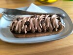 Заходили мы в это кафе в будний день, вечером. Людей было мало. Само кафе также было маленьким, однако имело уютную атмосферу: простой, но красивый интерьер; приятная музыка, дружелюбный персонал. Вкусов эклеров здесь очень много, и каждый человек найдет себе какой-то по душе. Хоть и само кафе специализируется на эклерах, здесь также можно найти другие десерты и завтраки. Я заказала фисташковый эклер, эклер "манго-маскарпоне", а также матча-латте. Моя подруга заказала мини гриль чиз с пепперони, скрэмблом и томатами. Время ожидания эклеров вместе с самим напитком — минут 5-10. А вот сэндвич пришлось подождать дольше, так как он готовится с нуля. Примерно минут 20-30. Эклер "манго-маскарпоне" был очень вкусным и нежным. Внутри него имеется яркий манговый конфитюр, а также легкий крем с маскарпоне.Очень хорошо дополняет вкус десерта декор из муссовых шариков, которые делают этот эклер ещё нежнее, а также песочный крамбл, дающий хруст среди мягких составляющих. В общем, не эклер, а блаженство🤤 Хоть и фисташковый эклер был попроще, однако он тоже был очень вкусным. Он состоит из фисташкового заварного крема, а также декора из орехов фисташек и зеркальной глазури. Крем очень нежный, вкус фисташки натуральный и не навязчивый. Внешне матча-латте выглядит красиво, однако по вкусу он мне не понравился. Но, в принципе, матча — напиток на любителя, так что не думаю есть ли смысл снижать за это оценку.. Моей подруге мини гриль чиз понравился, но при этом она отметила, что это не было как-то особенно вкусно. Если вы любите десерты или просто хотите уютно провести время за чашечкой кофе, то это место я могу точно порекомендовать :)