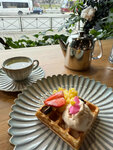 Сегодня завтракала в данном ресторане, брали вафли с мортаделлой и круассан с лососем , очень вкусно и довольно сытно, на вид тоже очень круто. Так же брали десерты фундук, очень вкусный и нежный и оливье, начинка в нём довольно вкусная, но на любителя, так же чизкейк баскский он был тоже очень нежным и вкусным. Так же был очень вкусный кофе, довольно крепкий в меру. Ожидали недолго.Местоположение идеальное, вид из окна топовый. Атмосфера в этом месте особенная, много разных украшений. Был очень добрый и отзывчивый официант Софья, предложила воды пока будут готовить блюда, спросила когда выносить напитки, спросила все ли нам понравилось, персонал улыбчивый и добрый. Лучшее место!