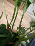 Доставили несвежие цветы.А одна из роз была совсем завядшая.Когда освободила букет от упаковки увидела,что на их стеблях нет ни листочка-очень странно смотрятся крупные розы с голыми стеблями в вазе.Лиственное растение,которое дополняло букет так же было наполовину засохшее,часть листьев и стеблей было обломано.