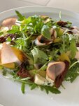 В кафе «Фреско» ввели новые блюда в меню, одним из них был салат с персиками , шпинатом и прошутто . Решила попробовать… Ниже прикрепила фото, на них и так все понятно. Но, пожалуй поясню. Вместо прошутто - карбонат, вместо шпината- руккола, французскую горчицу забыли … из соуса к салату только бальзамик, салат сухой, безвкусный. Я понимаю что цена низкая, но за чем вводить потребителя в заблуждение ? И если бы меня предупредили заранее о подмене ингредиентов,я бы слова не сказал. Две звезды, за то что вы тут есть. Но, скти претензии это не меняет. 1 фото - то что принесли, 2 фото - из меню с заявленными ингредиентами