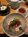 Ресторан соответствует уровню ожидания. Обслуживание не навязчивое. Еда очень вкусная, заказал куриный суп и мясную сковороду, очень сытно. Десерт просто топ, типа медовик с фруктами и орешками как у сникерса, кулинарный шедевр🔥 Наелся почти на целый день🤗
