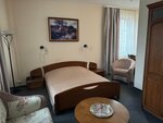 Очень понравилась гостиница. Цена - доступная, номер очень аккуратный, выглядящий даже благородно. Коридоры такие, что по ним хочется гулять, рассматривая картины на стенах. Оформлена в том же стиле даже территория перед гостиницей. Есть хоть и небольшая, но своя парковка. При выезде оказалось, что нет воды, но это не вина гостиницы - проводились ремонтные работы на коммуникациях. Вряд ли это случается часто.