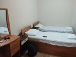 Не заселяйтесь сюда, если не хотите испортить себе отдых. Из плюсов работал холодильник, кондей и телик, только вот на второй день свет вырубили) Постельное белье с дырами и пятнами, плесень на стенах и в туалете, запах в номере убивающий, дверь в туалет обмазанная непонятно чем, двери закрываются и открываются с таким жутким скрипом, соседей слышно, на матрасах можно ногу сломать, затекает всё, пружины торчат. Приехали в марте, в номере до жути холодно, пришлось укрываться старыми одеялами, толку от них вообще нет. Двухместный номер это две односпальные кровати сдвинутые вместе, хорошо, что с близким человеком поехали. Прихожей и не пахнет, там где обувь, там и холодильник) Фото на сайте шик и блеск, не верьте им ни в коем случае!!!