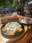 Расположение кафе и терраса прекрасны, но я бы сказала, что обслуживание и кухня могли бы быть лучше. Мы ждали вареники с творогом 45 минут… Нам принесли салат, а мы его не заказывали. При этом драники фирменные для меня показали ну слишком масляными, а соус в стиле майонез… Вареники с творогом почему-то были почти без творога.