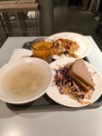 Смотрите - я поставил пять звёзд, но тут есть нюанс. Я брал бизнес-ланч комплектом - и вот как именно столовая при бизнес-центре сходить на обед вопросов нет. В заведении чисто, приятный для столовой интерьер. Но идея продавать блюда из меню на вес мне не нравится, это долго, там скапливается очередь. Ну и хотя это и в основном не вина владельцев - очень неудобная внутренняя планировка помещений.