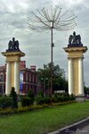 Красивую им подсветку сделали..Ворота кажутся прозрачными, сделанными из глыб льда! Правда уже в одном месте после ремонта отошла штукатурка. Надо бы устранить этот недостаток, иначе он спровоцирует дальгейшее отслоение.