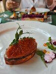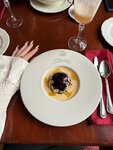 Были в ресторане 5.09.25 Обслуживание хорошее. Все вежливо и дружелюбно от хостеса до официанта. Сидели на 1 этаже, в ресторане полумрак, но атмосферно. Живая музыка была в стороне, поэтому насладиться ей не удалось. Из блюд брали щучью икру с блинами ( икра вкусная, блины со странным привкусом), тар-тар, куриную грудку с трюфелем, котлету Пожарскую и 2 десерта. Ни одно блюдо не вызвало восторг, к сожалению. Горячее мы даже не доели Возможно в меню есть более удачные позиции, но нам не повезло …