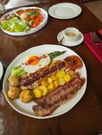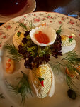 Начну с того, что атмосфера места 10/10, ты не просто приходишь в ресторан отметить что-то, пообщаться, вкусно поесть, но в процессе еще и наслаждаешься внутренним убранством, мельчайшими деталями, которые дополняют интерьер. Восторг! Мы были в пятницу вечером и звучала ненавязчивая живая музыка - каверы на известные композиции. Полный восторг! Подача блюд на уровне, обслуживание тоже - у нас был потрясающий официант, который в дополнении рассказывал историю происхождения некоторых блюд. Получили в тот вечер эстетическое, вкусовое и слуховое наслаждение.
