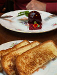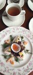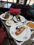 Ресторан «Кафе Пушкинъ» входит в холдинг Мезон Деллос. Все рестораны Деллоса с очень оригинальной концепцией. У кафе «Пушкин» есть своя легенда , связанная с французским шансонье Жильбером Беко и его песней «Натали», которую он написал после посещения Москвы. Обстановка особняка соответствует домам дворянства 19 века и все предметы в интерьере здесь антикварные. Кухня - русская. В «Пушкине» 3 этажа, соответственно три зала: «Аптека» - 1 этаж «Библиотека» - 2 этаж, здесь все книги антикварные, можно посидеть и почитать. «Антресоль» - 3 этаж. Чем выше этаж, тем дороже)) С третьего этажа ( это действительно антресоль) очень красивый вид на второй этаж. Есть черный лифт с ажурными дверями ( фото в комментариях). Так что вы можете подняться на нем , а спускаться пешком , рассматривая залы. Не знаю как сейчас, но когда ресторан открылся в 1999 году, то можно было попросить администратора провести вас по этажам и рассказать об особняке, о залах, о легенде , связанной с созданием этого ресторана. И ресторан работал круглосуточно. Сейчас с 9.00 до 00.00. Круглосуточно только в пятницу и выходные. Есть вайлет паркинг. Он действует на все рестораны холдинга, которые находятся по соседству- «Турандот», «Шануар», кондитерская «Пушкин». Подъезжая к ресторану, вы оставляете машину, отдаете ключи парковщику, а тот отвозит ваш автомобиль на подземную парковку и потом привозит. Очень удобно. Для 1999 года такой сервис был в новинку. Это был первый и единственный ресторан с подобной услугой. И хоть тогда не было такой ужасной парковочной ситуации, как сейчас в Москве, но подъезжать к ресторану в «припадке красоты» и искать место для парковки- не самое приятное занятие, особенно для дам. Ну если только вы не приехали с личным водителем. Сейчас подобная услуга есть у многих дорогих ресторанов. Кондитерская «Пушкин»- это соседняя дверь (не ошибитесь дверью). Там подают утром завтраки, а в основном меню- десерты, чай, кофе. Ценовая политика - дорого. Поэтому если вы хотите ознакомится с этим местом, но бюджетно, рекомендую прийти на деловые обеды. Деловые обеды с 12.00 до 16.00 Из двух блюд, из трех блюд, из четырёх блюд. К обеду вы можете заказать бокал вина по специальной цене. Чай или кофе (на выбор) входят в обед. Нам принесли три вида хлеба( подача входит в деловой обед). В меню в разделе «Салаты и холодные закуски» - 4 позиции ( на выбор) В разделе «Первые блюда»- 3 позиции (окрошка,лапша куриная, щавельник с грибами) В разделе «Горячие блюда» -5 позиций. Две из них меня озадачили названиями и мне даже пришлось загуглить что это)). А вы знаете что вам принесут, если закажете гефлюгели или кундюбки? Ну вот и я не знала)). В разделе «Десерты» -3 позиции. Мой выбор блюд получился грибным: щавельник с грибами, кундюбки (это типа жареных пельменей с грибами) Подруги выбрали на закуску лимбургский сыр и из горячего - зразы по рецепту Пожарского. И отдельно я еще заказала имбирно - облепиховый чай ( 640₽). Принесли маленький фарфоровый чайник (250 мл) и чашку. И дополнительно маленькую баночку меда, сказав: «Вдруг вам чай покажется кислым, вот вам для сладости мёд». Ну мимими какая забота)). Подают всё на красивом фарфоре с цветами. Мне хотелось конечно посмотреть производителя- перевернуть тарелку и прочитать… но ,понятное дело, в обстановке этой роскоши я этого делать не стала, а спросить официанта потом за