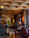 Посещение ресторана «Пушкин» - это всегда событие, и наш визит на завтрак полностью это подтвердил. Это место, где вы платите не только за еду, но в первую очередь за погружение в уникальную, возвышенную атмосферу. Сразу отмечу невероятный интерьер. Все три этажа выглядят великолепно и продумано до мелочей: изящные колонны, фантастические фрески на потолках, дорогая мебель - ощущение, что находишься в дворцовой усадьбе. Этот эффект дополняет безупречный сервис: официанты в фирменной форме общаются почтительно и ненавязчиво, создавая ощущение особого приема. Что мы пробовали на завтрак: · Каша на кокосовом молоке: Очень нежный и современный вариант классического блюда, понравится тем, кто ищет полезную и вкусную альтернативу. · Сырники: Подаются на выбор со сметаной или вареньем - классика, исполненная безупречно. Нежные, с золотистой корочкой, тают во рту. · Коктейли на основе просекко: Мы попробовали два - с клубникой и с персиком. Клубничный - это абсолютный восторг! Вкус сочный, яркий и очень свежий. Персиковый, к сожалению, показался менее выразительным, с более сглаженным вкусом. · Фирменный десерт «Пушкин»: Это произведение кондитерского искусства. Муссовый торт с несколькими текстурами, абсолютно не приторный, с очень свежим и сложным вкусом. Завершил трапезу идеально. Да, стоимость завтрака здесь существенно выше среднего по Москве. Однако в «Пушкине» вы получаете за эти деньги полный пакет: безупречную кухню, высочайший уровень сервиса и возможность на час почувствовать себя частью эпохи изящества и роскоши. Это бесценно. Однозначно рекомендую для особенных случаев или когда хочется поднять обычному утру настроение на весь день.