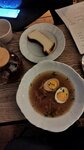 Место прекрасное, обстановка спокойствия и умиротворения. Официанты хорошо знают меню и могут дать рекомендации. Мы брали закуски: риет из лосося, оливки, сет намазок. Риет просто фантастика! На горячее - равиоли с морепродуктами - удовольствие до последнего кусочка. Захотелось повторить, так что ооочень рекомендую! А вот с десертами, на которые очень рассчитывали - не сложилось, к сожалению. Пробовали шу с фундуком, наполеон сырный с малиной и йогуртовый медовик. Шу неплохое, но фундука маловато, в наполеоне шикарное тесто, медовик довольно нейтральный.