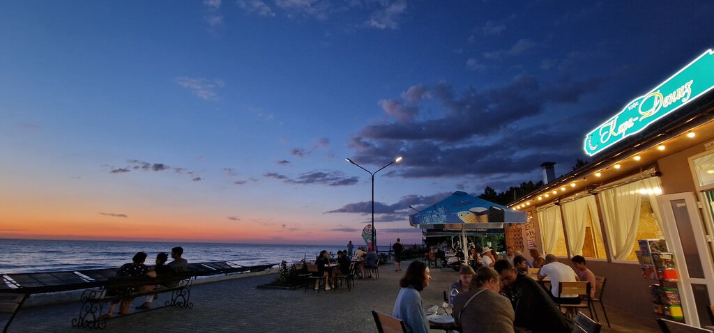 Плюсы - прямо на пляже, самая вкусная еда в Песчаном. Минусы - официантка всегда лежит на диване, приходится всегда её ждать или звать. Никогда сама столы не протрет. Внутри откровенно грязно - опять же - плохая работа официанта. Но к этому привыкаешь. Вкусная еда и виды моря все нивелируют.