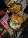 Заходили поужинать с друзьями, заказывала вареники с картошкой и грибами - на вкус обычные, как из магазина , Салат с ростбифом сладковатый, и хотелось бы чтобы немного больше соуса было друзья брали драники, сказали, что вкусно Обслуживание такое себе, посуду со стола не убирают, но при этом заказ достаточно быстро выносили (были в воскресенье вечером, зал почти пустой был). Цены выше среднего, были в заведениях национальной кухни, где блюда более интересные по составу Интерьер понравился, здание историческое