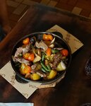 Еда -3 Взяли сковородку с курицей, сало и вареники: Сковородка - мясо сочное, но все как в столовой. Шарики и какие-то невнятные овощи. Не вкусно Сало - вкусно. Чеснок и зелень старые сухие. Вареники - не успели попробовать. Сангрия - нормально Общее впечатление испортило что забыли про вареники, при том что мы были одни. Если бы не прайс и позиционирование как национальная кухня, то можно было бы ставить 4,5. А так, только 2: нужна свежесть блюд и шире ассортимент. Не советую