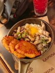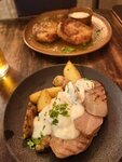 Посетили компанией, 10м зайти и покушать без предварительной брони очень сложно. Нас разместили, тесно, но поели. Блюда готовили быстро. Драник с бефстроганов очень вкусно, драник зажаристый, говядина мягкая и вкусная. Куриное филе с клецками, не понравился способ приготовления курицы, грудинка сухая, если бы была тушёная с грибами в сливках, получилось куда вкуснее, чем просто обжареная грудинка политая сверху данным соусом, а вот клецки бомба. Вареники с грудинкой тоже понравились, вкусные. А вот пельмени не зашли, фарш полуфабрикатный.