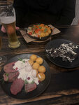 Уважаемым друзьям и владельцам сего заведения! Сначала о плюсах: 1. Кафе довольно антуражное, стиль выдержан. 2. Порции не огромные, но и не маленькие надо признать. Подача блюд красивая. 3. Еда действительно вкусная, хотя моей спутнице не понравился говяжий язык ( попробовал сам кусочек, восторга и у меня не произошло). Клецки вкусные, хотя кому-то могут показаться пресноватыми. Сало просто балдёж. Борщ вкусный, но слишком мало мясо (не знаю, мб мне так попалось, мб такова политика заведения). 4. Настойки сногсшибательны👍 5. Готовят довольно быстро, блюда подают горячими. 6. Десерты приятные. Теперь о минусах: 1. Безумно грязный туалет! 2. Недоброжелательные официанты Милана и имя второй девушки не запомнил (мы были в кафе, в 18-ть часов 06.01.25), причём абсолютно, судя по увиденному (кроме барменши-баристы) Уважаемые владельцы, если Вас заботит репутация вашего ресторана, проработайте этот момент. Всё таки ресторан не очень-то дешёвый и судя по оценкам, довольно популярный в Гродно. Люди не в Макдоналдс приходят покушать, а в реально вкусное заведение. Хочется всё таки ,чтобы люди были чуточку добрее на обслуживании гостей. Всем добра и вкусной еды✌️