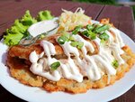 Заехали с семьёй после долгой дороги. Сели за столик на террасе с видом на озеро. Взяли суп холодник и драники с мясом. Суп очень вкусный, как дома. Порция драников большая (2 больших драника) и, очень сытная. Обслуживание простое и душевное.