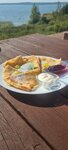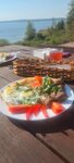 Очень понравилось расположение кафе, у самой воды. Можно покушать на улице и на втором этаже кафе с видом на озеро. Если прохладно , можно взять плед. Вкусные домашние комплексные обеды, своя выпечка. Еще брали драники, тоже понравились.