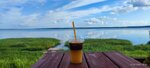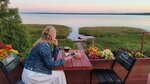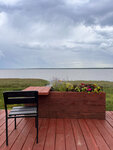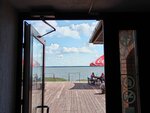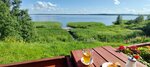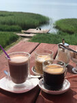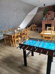 Приятное место с красивым видом, очень уютно на втором этаже, есть небольшое окошко с панорманым выходом на озерной вид, можно зажечь свечу, поиграть в ручной футбол, отдохнуть на диванчиках с пледом, на улицу в прохладу также предлагают подушку и плед, во время нашей поездки можно было угощаться яблоками возле бара, купить подушечки с лавандой, душевное и простое место.
