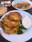 Вкусные драники с мясом. Готовили прямо с нуля и на совесть. Приветливый персонал