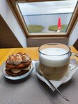 Очень милое кафе, вкусные блюда и латте оказался неплохой. Персонал прекрасный и обслуживание на уровне, красивый вид со второго этажа. Цены вполне умеренные, от кафе есть спуск к озеру. На улице есть несколько столиков, внутри тепло и уютно. Мне все очень понравилось, пять звёзд! Единственный небольшой минус который я заметил – на лестнице, ведущей на второй этаж (и на самом втором этаже) в некоторых местах низковат потолок, но какой то проблемы в этом я не вижу.
