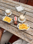 очень вкусная еда и вежливый персонал, готовят быстро, уютный интерьер, кафе с чудесным видом на озеро (если повезет, в нем проплывет бобер), персонал помогает и подсказывает, чудесное место!!!❤️
