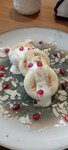 01.01.24 были в заведении впервые, когда зашли в кофейню в зале никого из персонала не было, следовательно нас никто не встретил, но при этом атмосфера уютная. Сели за стол, за которым до нас сидели люди, попросили убрать столик девушку официанта, спустя 10 минут стол так и не кто не убрал. На повторную просьбу убрать стол девушка ответила: «Ну подождите ещё, не видите что я занята, у меня заказы, могли бы и сесть за другой стол». Так как были в первый раз не знали что надо подходить и говорить свой заказ, при принятии заказа девушка была в наушниках, отвечала кому-то в телефоне и не разу не отвела от него взгляда на нас. Заказали мохито, принесли без мяты, лайма, с одним КУСКОМ лимона. На счёт кухни не пожалели ни разу, будем заказывать ещё, шеф-повару и поварам респект.