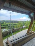 Из плюсов чистый номер с современной мебелью, кондиционер. У нас была двухкомнатная студия, потому два балкона на 4 этаже. На одном балконе гамак и мягкое кресло с хорошим видом на реку. Можно выйти в беседку и пожарить шашлыки, посидеть у воды с удочкой или чем-то другим. Есть возможность за отдельную плату арендовать баню. Парковка за забором, но под видео наблюдением, с местами нет сложности на парковке. В нашем случае была микроволновая печка и набор посуды на троих. Из минусов: очень медленно работает WiFi, нет возможно готовить еду из-за отсутствия плитки при том, что есть работающая вытяжка для неё, завтраки дорогие и не соответствуют описанию, не все лампочки работали в номере (на балкона, несколько подсветок в зале и комнате). Телевидине или местное или платные каналы.