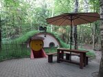 Приятно провели время. Только что открылись номера норы с удобствами. Были в хобитовской бане-не поняли где там помыться после париоки, так как в парилке оить воду запрещено, а в комнате с ушатами вся вода ледяная. Но все равно сполоснулись. Территория небольшая. В лесу. Набрали грибов. Номер уютный, теплый, с кухонкой, два этажа, детям верхний ярус очень понравился. Мне гчень круглая дверь в номер понравилась из дерева диаметром 1,70м